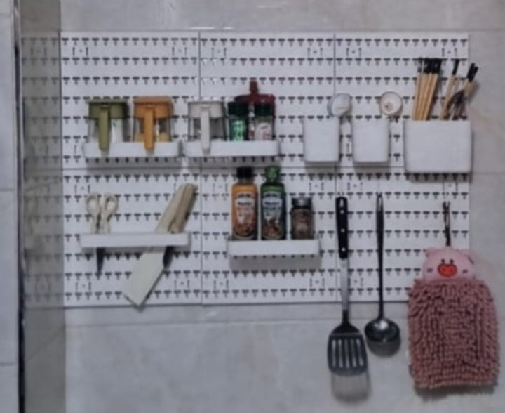 This PVC pegboard offers versatile wall storage solutions for dormitories, kitchens, and bathrooms and craft areas. Designed for easy installation, it features three customizable combinations to create shelves, partitions, and organized storage spaces tailored to your needs. Ideal for maximizing functionality while maintaining a clean, professional look.